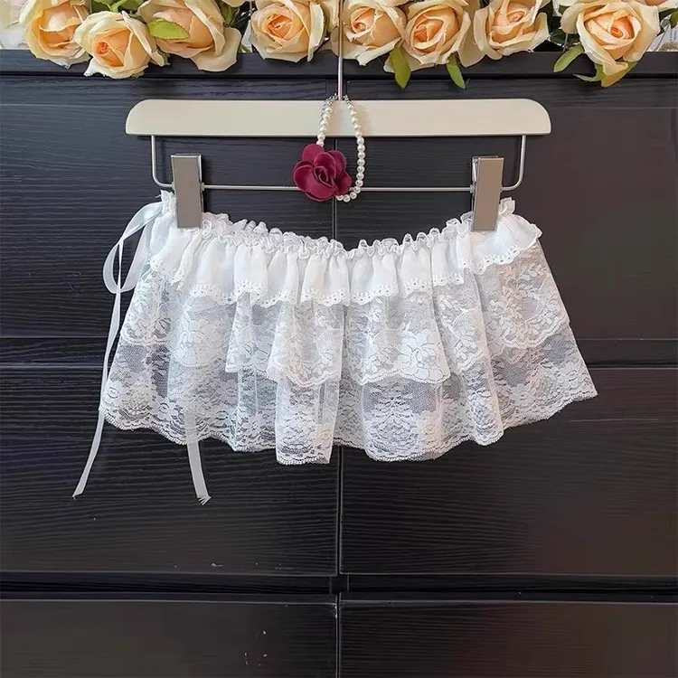 韓國ins芭蕾蕾絲花邊短綁帶腰簾A字型繫帶裙 #可調節 #法式 #遮大屁屁 #甜系女孩