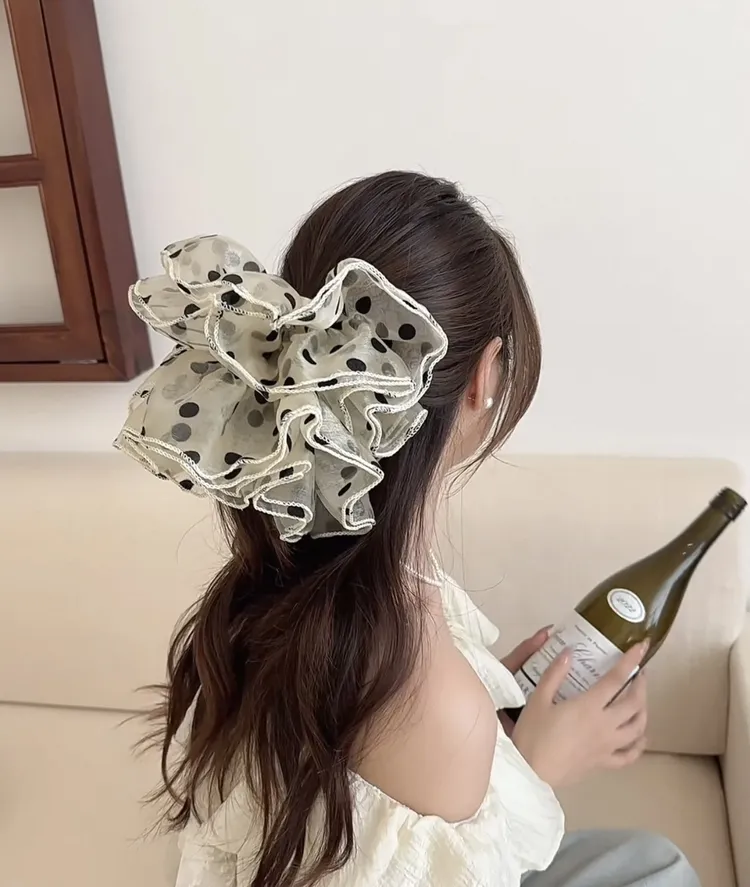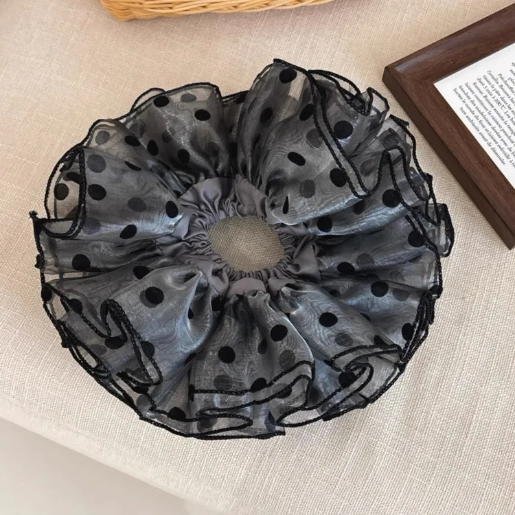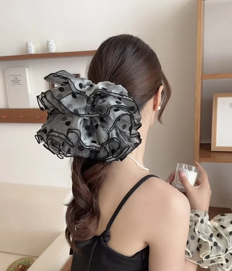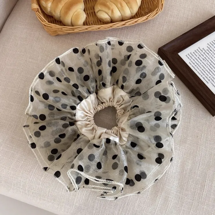 韓版新款超大號波點皺褶雙層網紗大腸髮圈 #高馬尾 #丸子頭 #ins風
