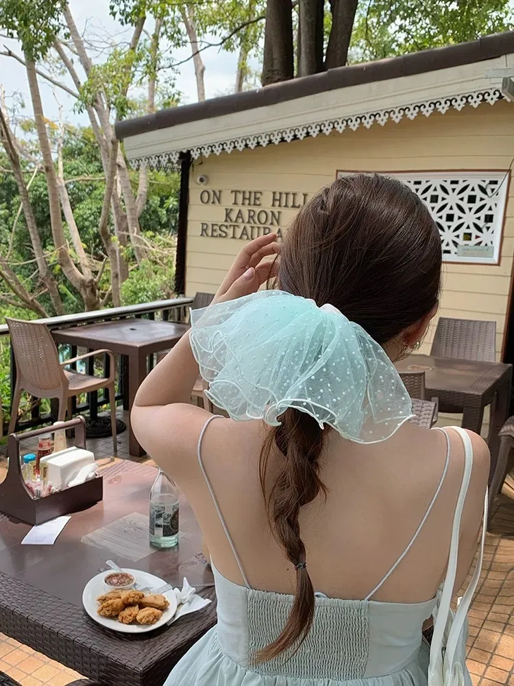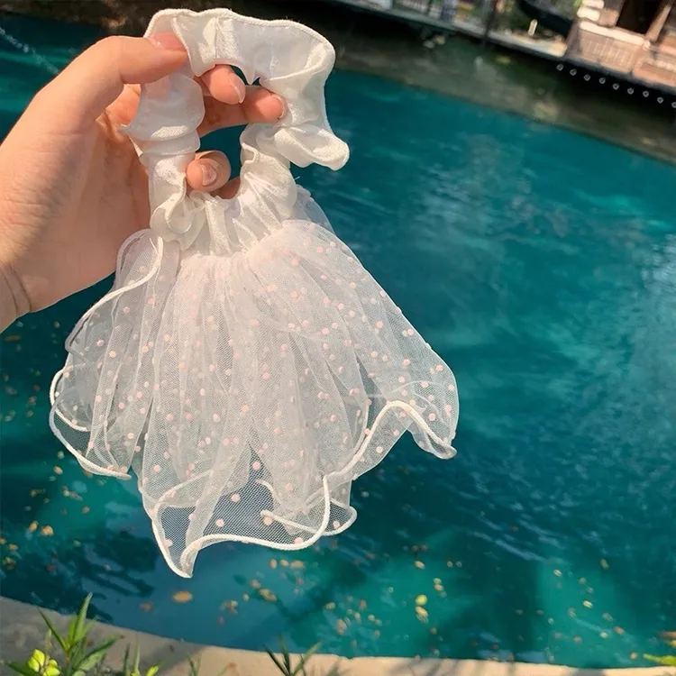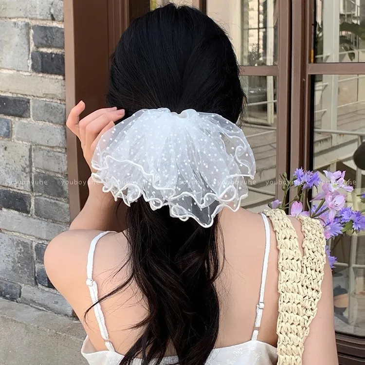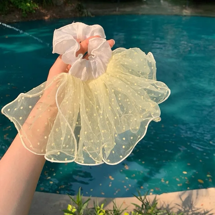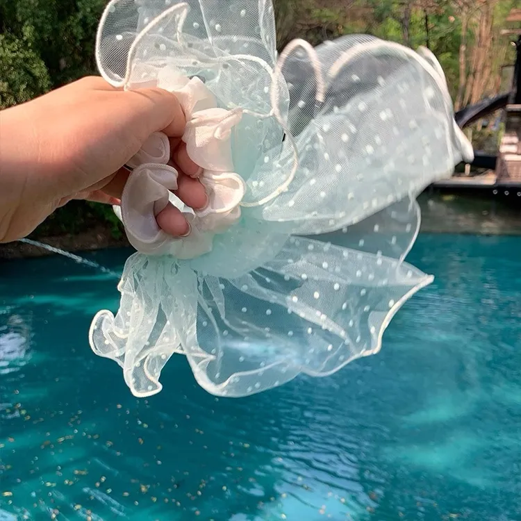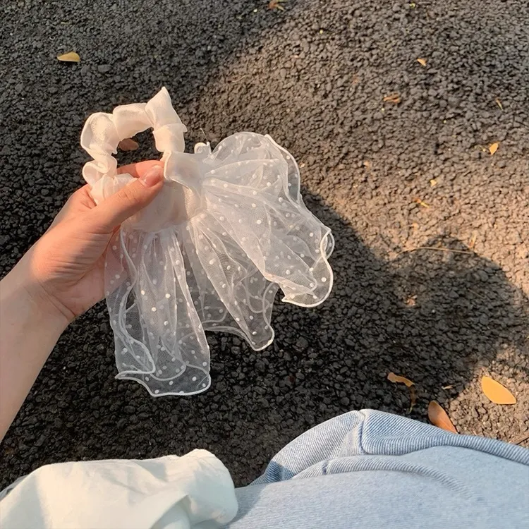 韓國東大門!超仙氣蕾絲網紗波點裙擺大腸髮圈 #丸子頭 #低馬尾 #公主頭 #仙氣爆款