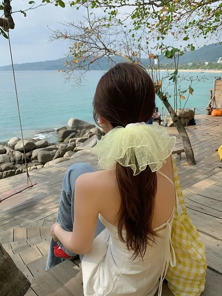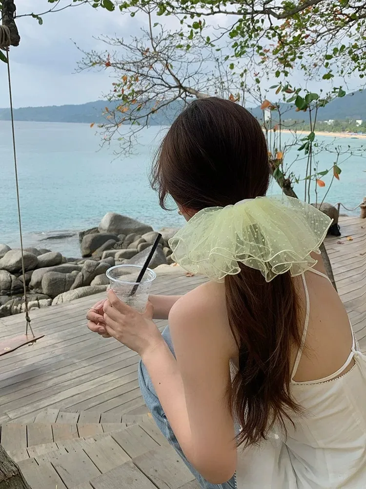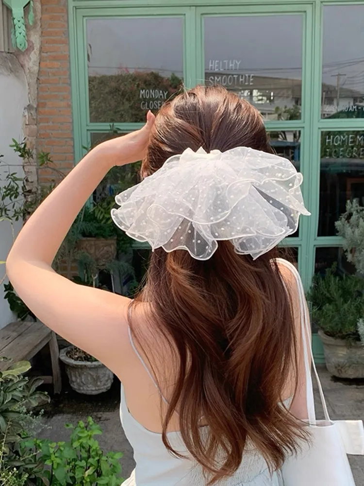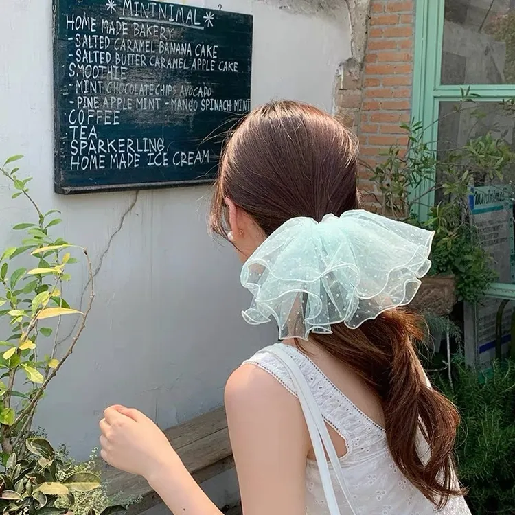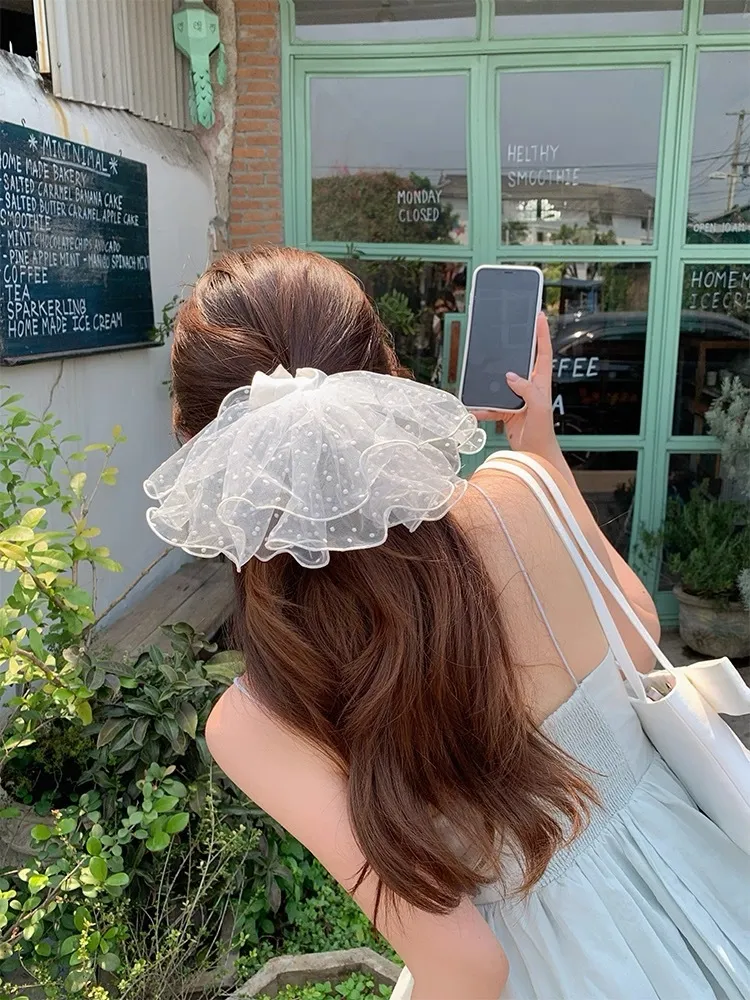 韓國東大門!超仙氣蕾絲網紗波點裙擺大腸髮圈 #丸子頭 #低馬尾 #公主頭 #仙氣爆款
