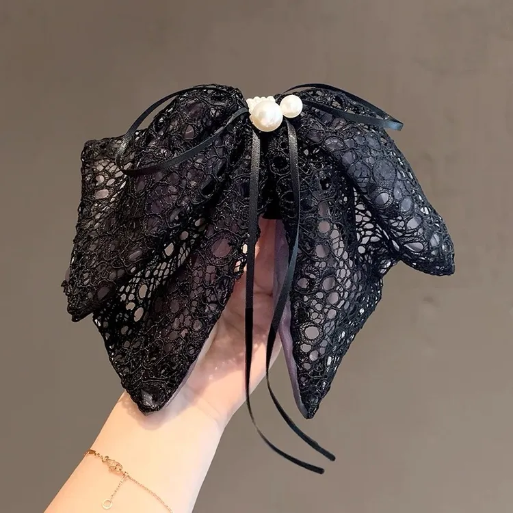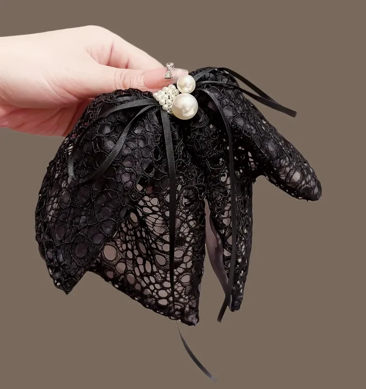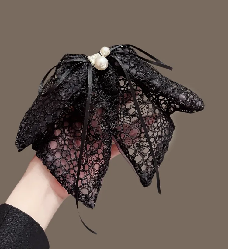 韓國新款蕾絲珍珠馬尾蝴蝶結氣質高級感後腦勺抓夾 #低馬尾 #公主頭 #盤髮 #ins風