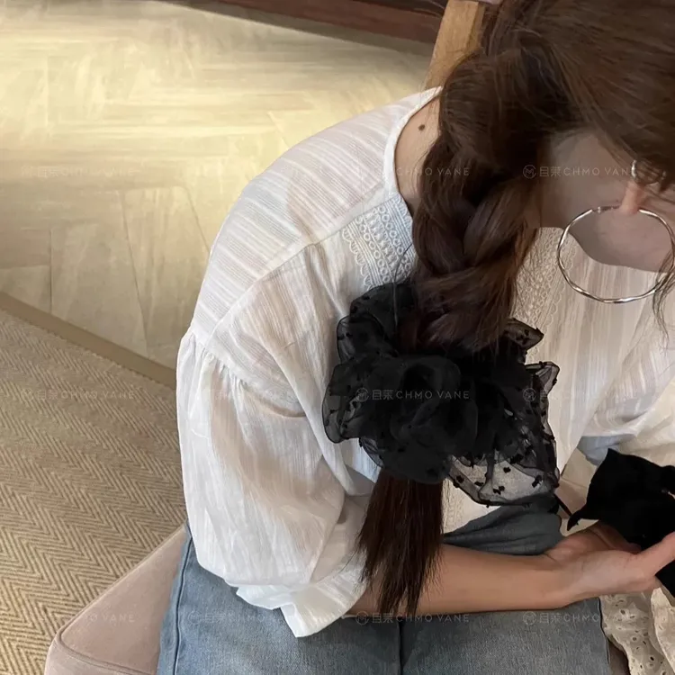 韓國ins超仙蕾絲邊純色大腸圈氣質簡約百搭低馬尾丸子頭 #低馬尾 #ins風 #仙氣