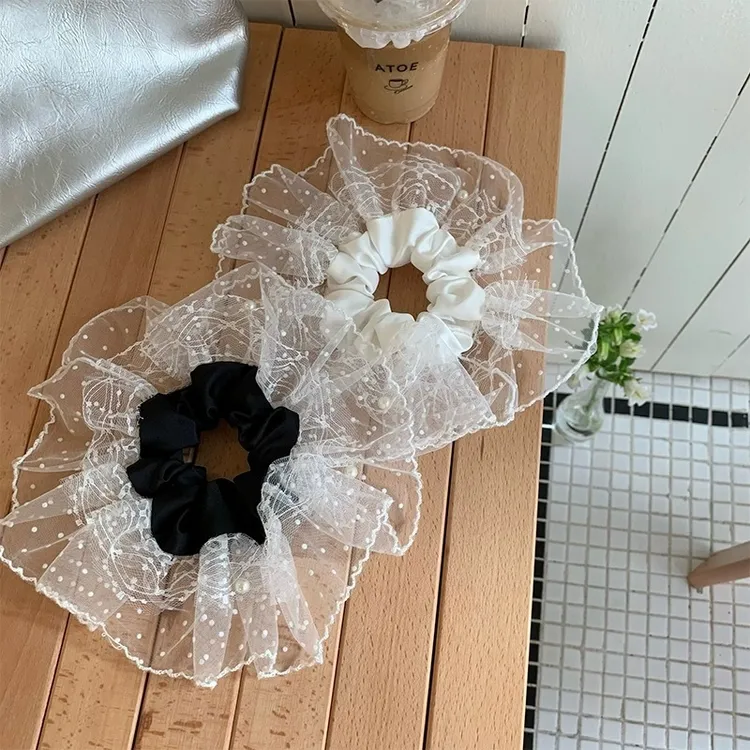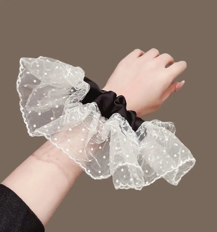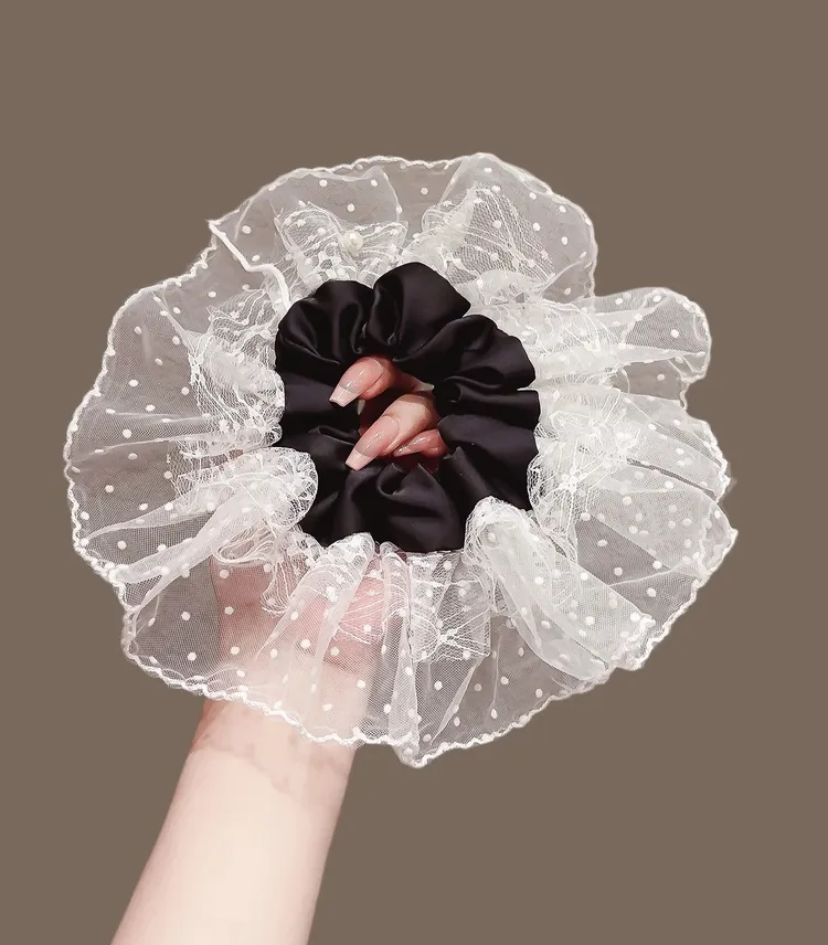 韓系ins波點網紗蕾絲大裙襬高級感大腸髮圈 #甜心必備 #超氣質款 #芭蕾風