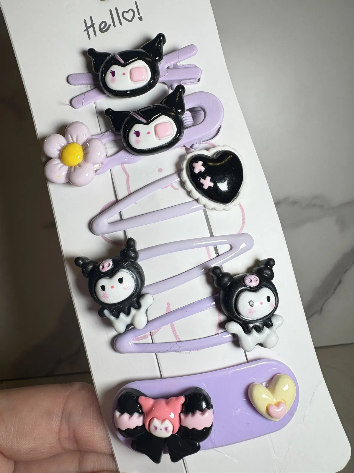 女童可愛卡通黑紫色酷洛米髮夾*6個夾